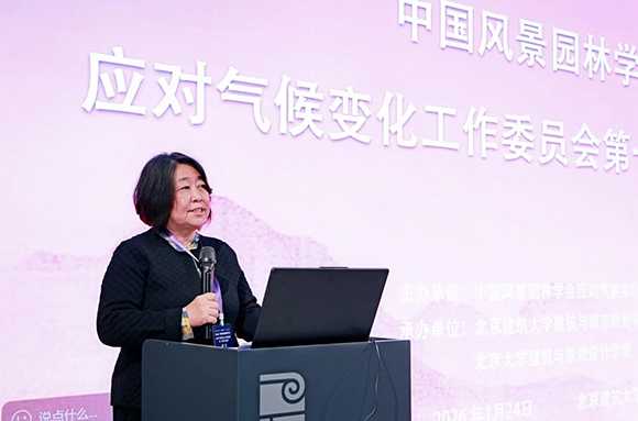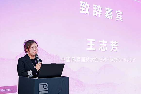 (北京大学建筑与景观设计学院教授王志芳发言)本次会议开幕式由北京建筑大学党委书记何立新主持。中国风景园林学会副理事长王磐岩在致辞中指出,气候变化是全球面临的严峻挑战,中国"双碳"目标已纳入国家战略,风景园林行业在绿色基础设施建设、提升城市韧性和推广基于自然的解决方案方面具有独特作用,并呼吁委员会团结行业力量,为美丽中国建设贡献智慧。北京建筑大学副校长李俊奇强调,气候变化是跨学科议题,风景园林应成为多方协同的平台,并期待通过产学研融合推动生态文明建设与行业创新发展。应对气候变化工作委员会主任委员、北京大学建筑与景观设计学院副院长王志芳教授则回顾了俞孔坚教授创办委员会的初衷,呼吁行业同仁携手构建"学术森林",共同应对气候挑战,并强调委员会将继续深化科研与实践融合,助力美丽中国建设。